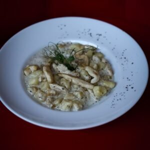 (картопляні деруни, яєчня з грибами, мисливські ковбаски)